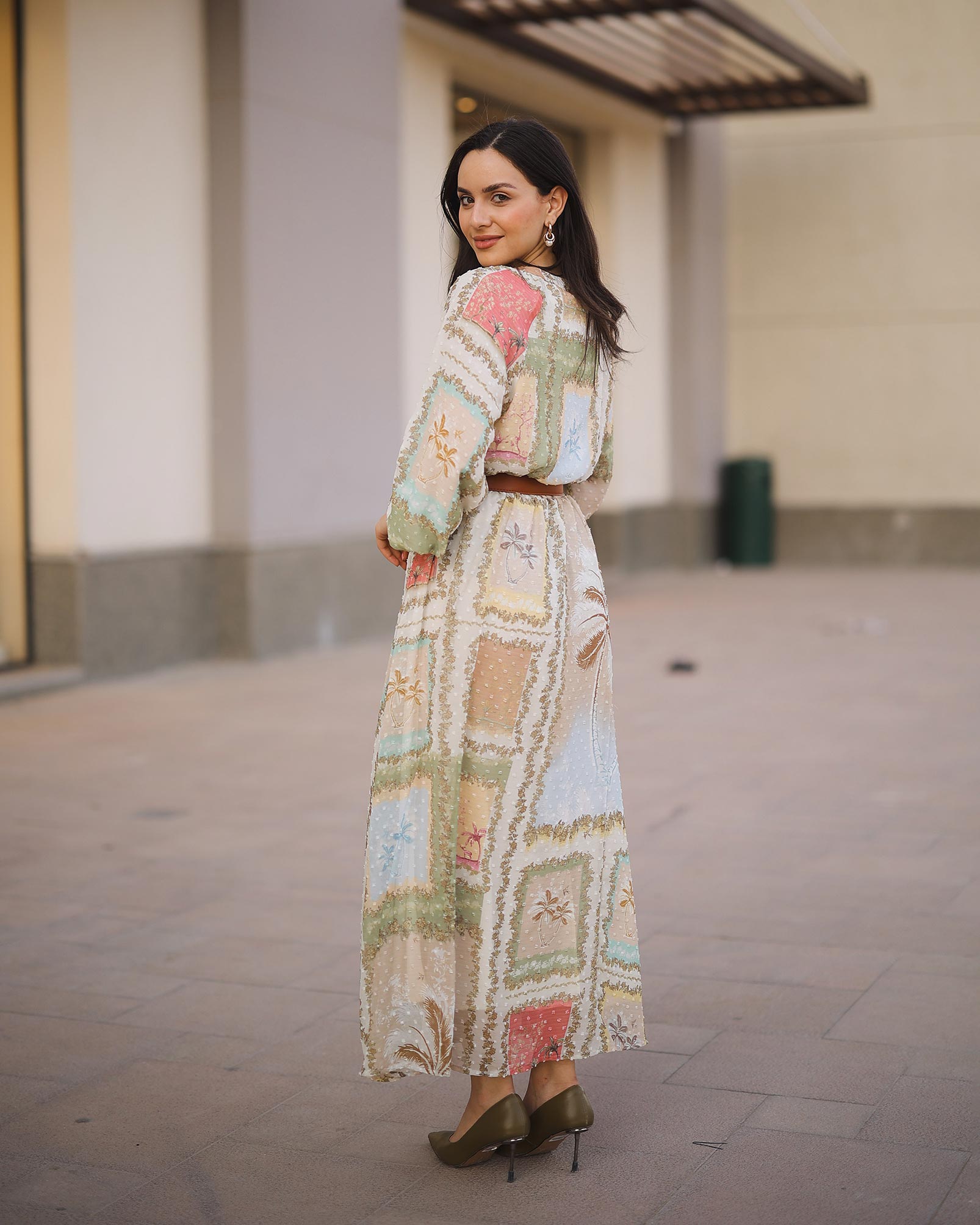 فستان صيفي طويل مطبوع، مصنوع من مادة الشيفون مع حزام من الجلد البني وأزرار أمامية. الكود : S5616 الخامة: شيفون الطول : طويل تعليمات العناية: غسيل آلي على درجة حرارة 30 درجة مئوية/86 درجة فهرنهايت كحد أقصى مع دورة عصر قصيرة، لا تستخدم مبيضات، مكواة على درجة حرارة 110 درجة مئوية/230 درجة فهرنهايت كحد أقصى، لا تستخدم التنظيف الجاف، لا تستخدم المجفف