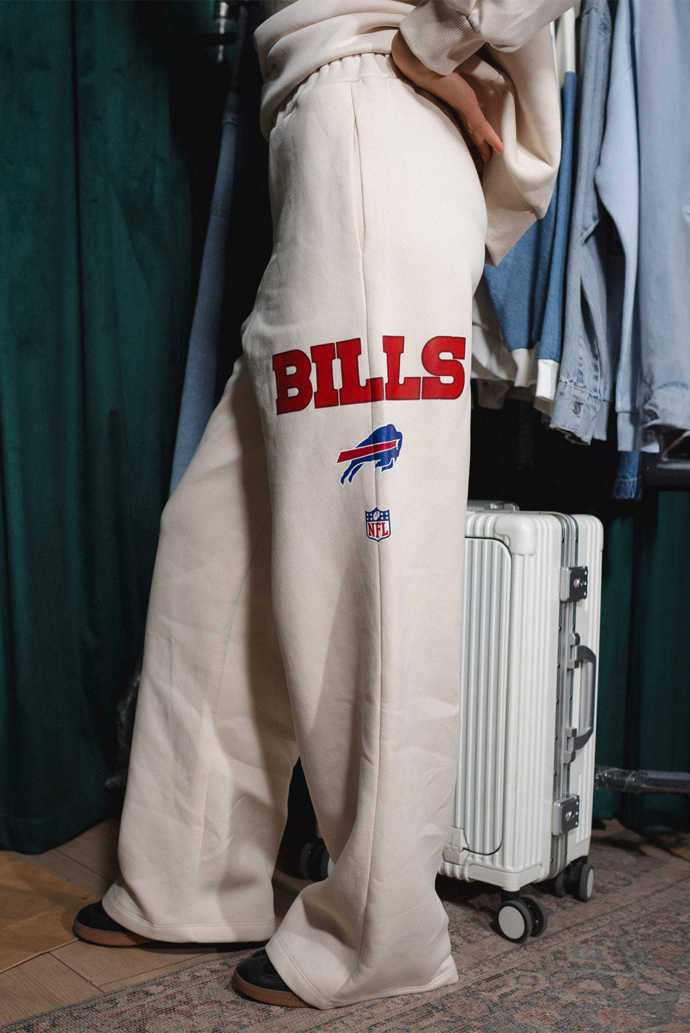 Soft cream cotton blend with a smooth finish. Designed with bold red “BILLS” lettering, elastic waistband, and a loose wide-leg cutCode :80494/1Material :Melton Length : RegularCare Instructions: Machine wash at max. 30ºC/86ºF with short spin cycle , Do not use bleach , Iron at a maximum of 110ºC/230ºF ,Do not dry clean ,Do not tumble dry