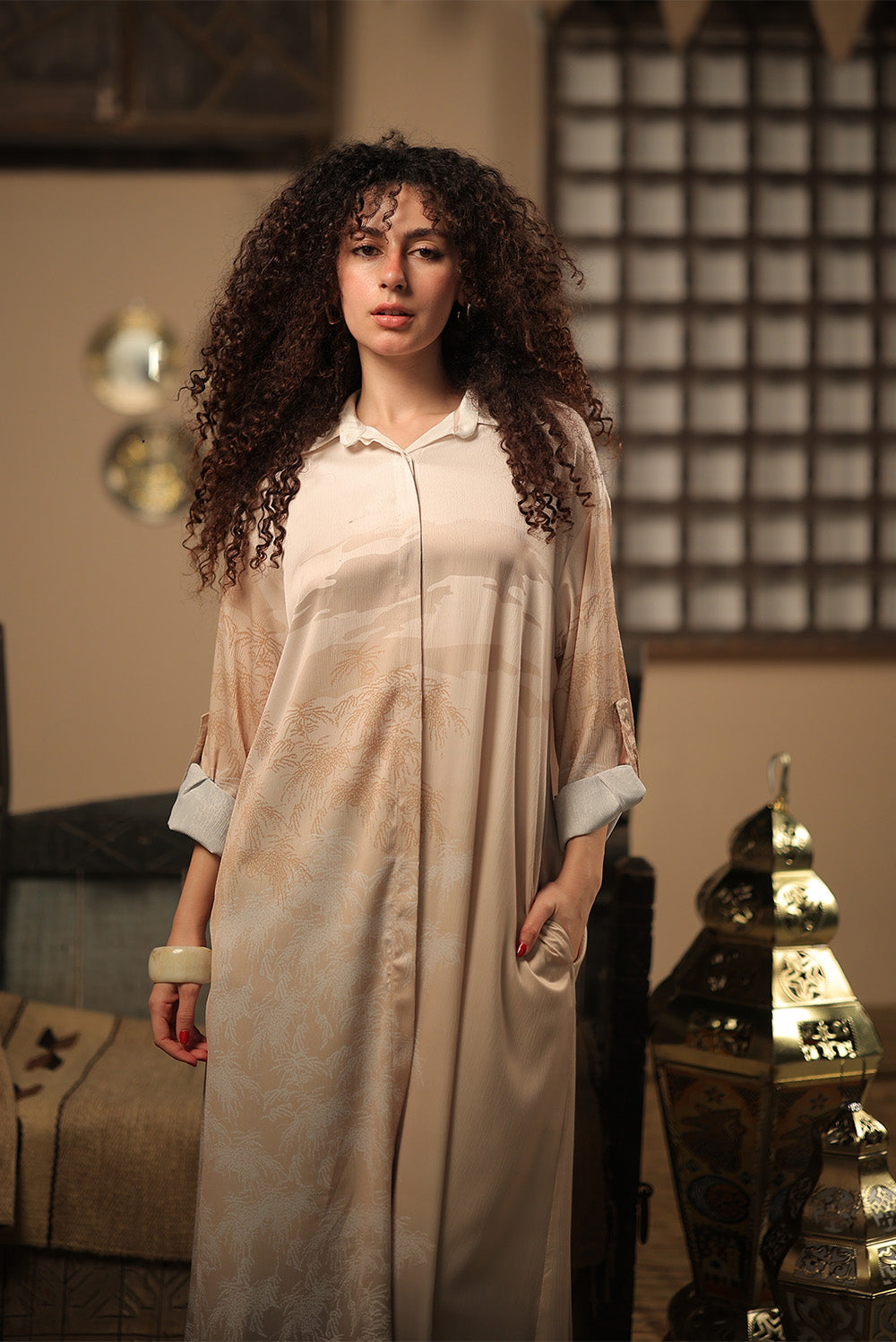 This long shirt dress comes with a loose, straight cut that feels light and easy to wear. It features a classic collar, front buttons, and long sleeves that can be styled rolled up or down. The soft printed pattern adds a subtle, elegant touch without being too bold.Code: S5961Material :FabricLength : RegularCare Instructions: Machine wash at max. 30ºC/86ºF with short spin cycle , Do not use bleach , Iron at a maximum of 110ºC/230ºF ,Do not dry clean ,Do not tumble dry