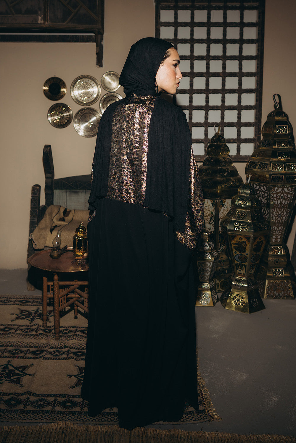 An open abaya with a relaxed, straight cut and a wide statement collar finished in a tiger print. Designed with clean lines and fluid sleeves for effortless layering. Crafted from a lightweight, flowing fabric that drapes smoothly and moves with the body.Code :B140Material :SatinLength : LongCare Instructions: Machine wash at max. 30ºC/86ºF with short spin cycle , Do not use bleach , Iron at a maximum of 110ºC/230ºF ,Do not dry clean ,Do not tumble dry