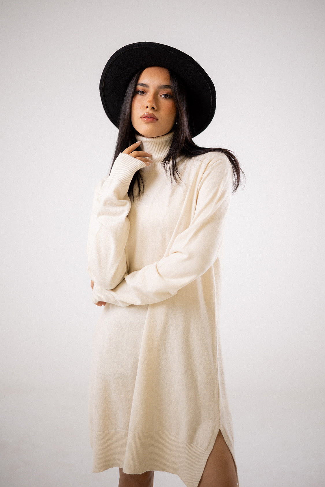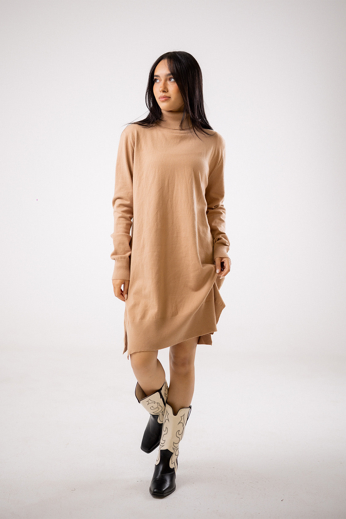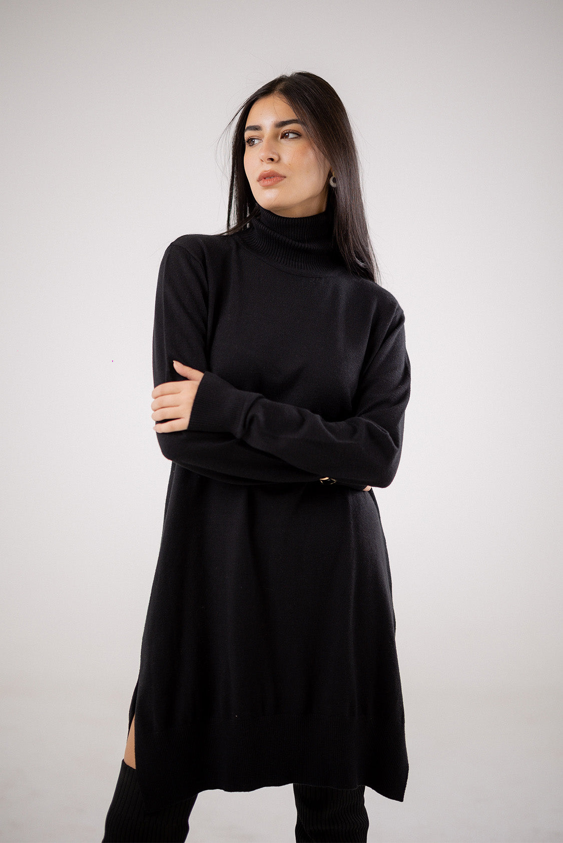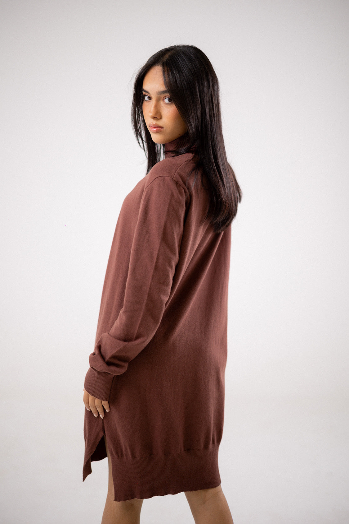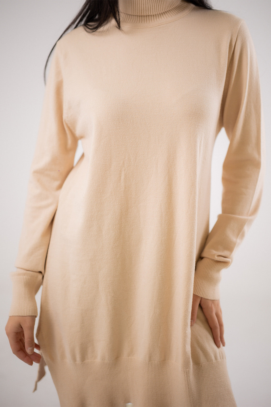 A knitted dress crafted from a soft, comfortable knit. Designed with long sleeves and a knee-length silhouette, it offers a relaxed fit that’s easy to wear and style for everydayCode :T1017Material :WoolLength : Long-65cmCare Instructions: Machine wash at max. 30ºC/86ºF with short spin cycle , Do not use bleach , Iron at a maximum of 110ºC/230ºF ,Do not dry clean ,Do not tumble dry