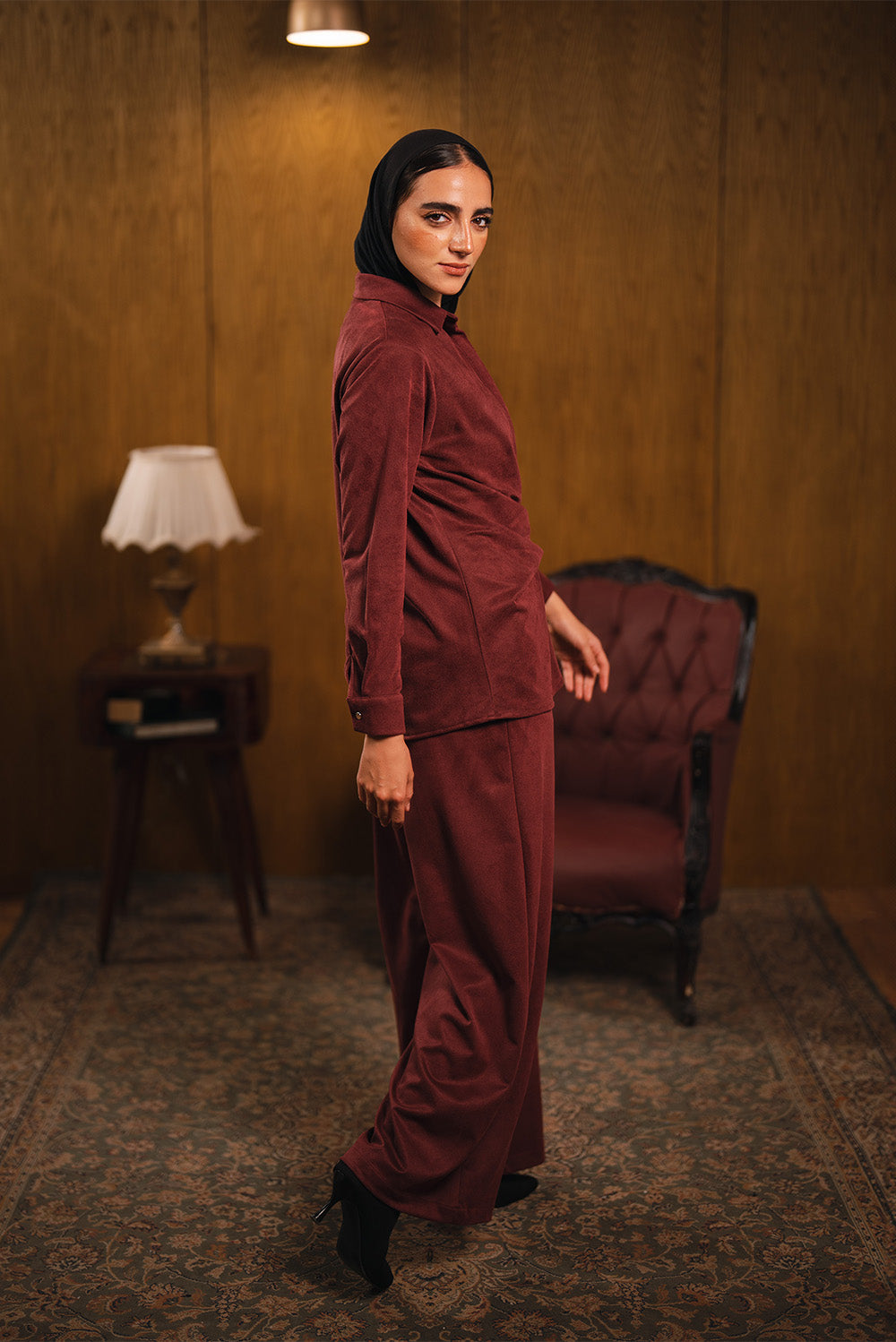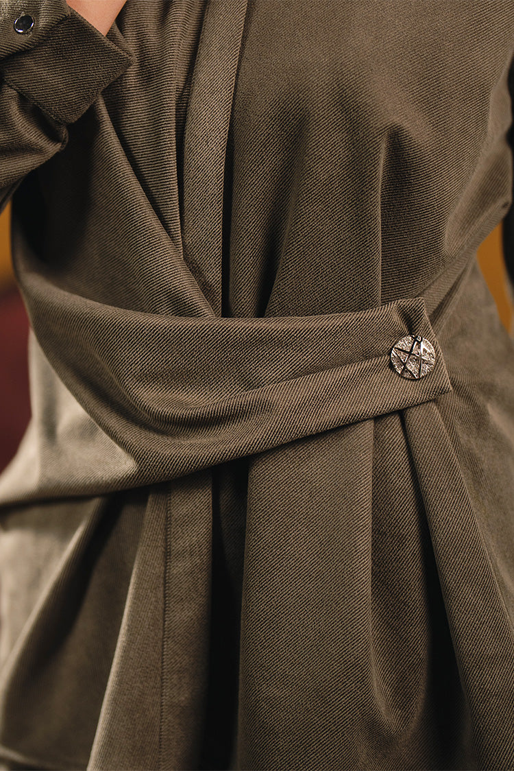 Made from a soft, suede textured fabric, this tunic features a structured collar, long sleeves, and a layered wrap detail secured at the side. The relaxed, flowing cut creates an effortless, elegant silhouette.Code :80545Material :Suede Length : RegularCare Instructions: Machine wash at max. 30ºC/86ºF with short spin cycle , Do not use bleach , Iron at a maximum of 110ºC/230ºF ,Do not dry clean ,Do not tumble dry