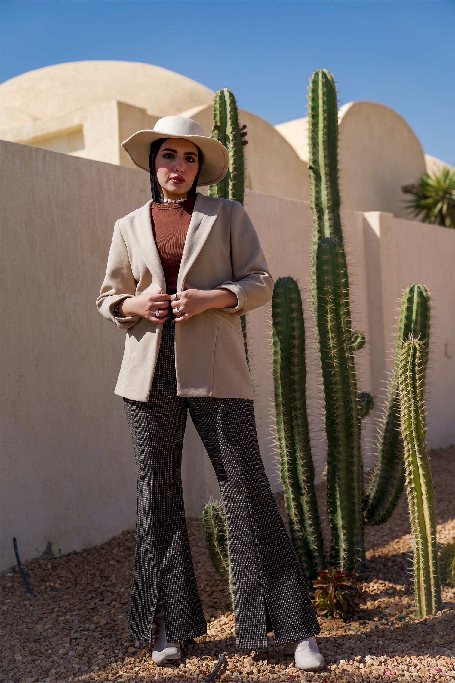 Made from check fabric, these trousers have a flare leg fit with a mid rise waist, offering a modern, tailored look.Code :80090Material :WoolLength : RegularCare Instructions: Machine wash at max. 30ºC/86ºF with short spin cycle , Do not use bleach , Iron at a maximum of 110ºC/230ºF ,Do not dry clean ,Do not tumble dry