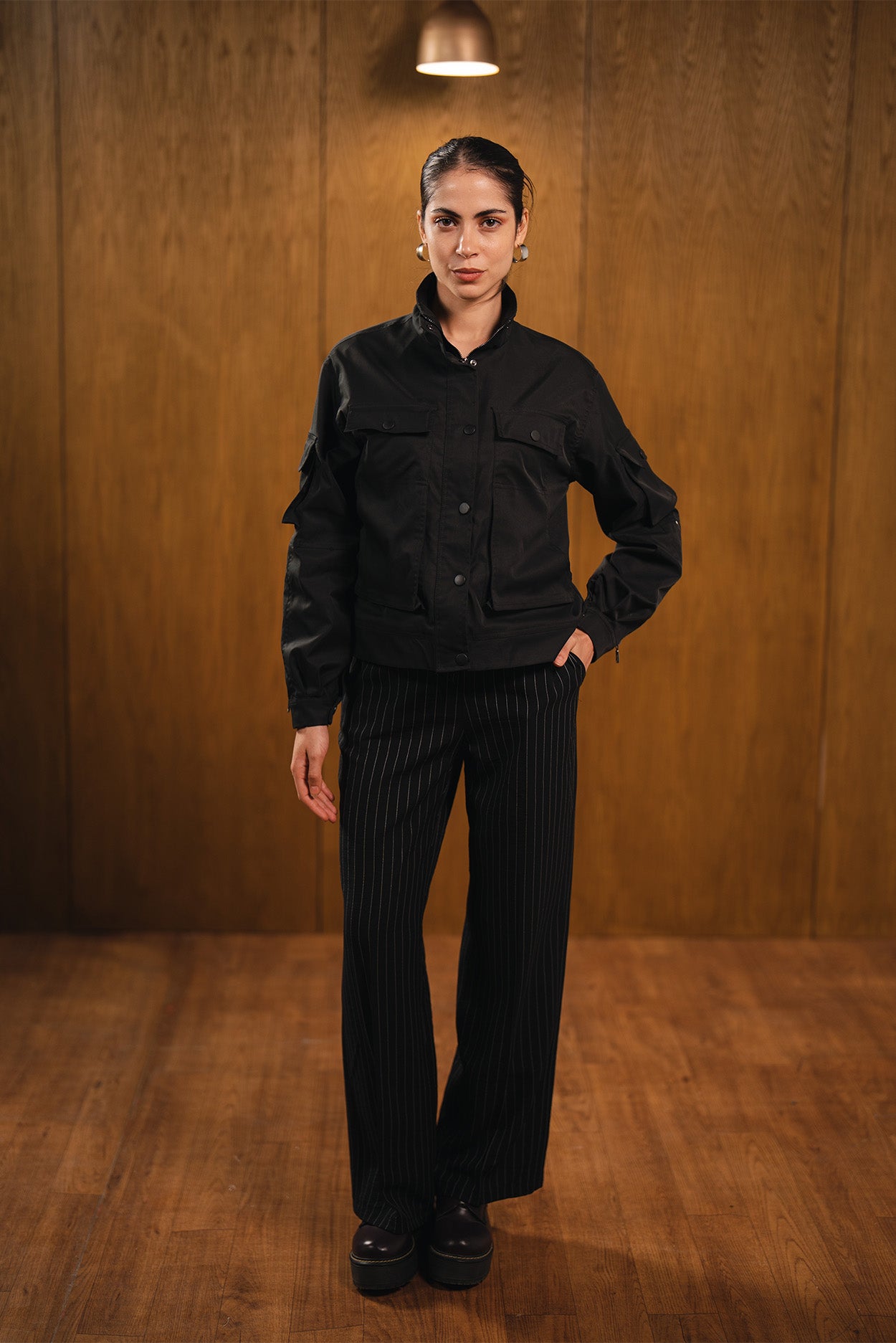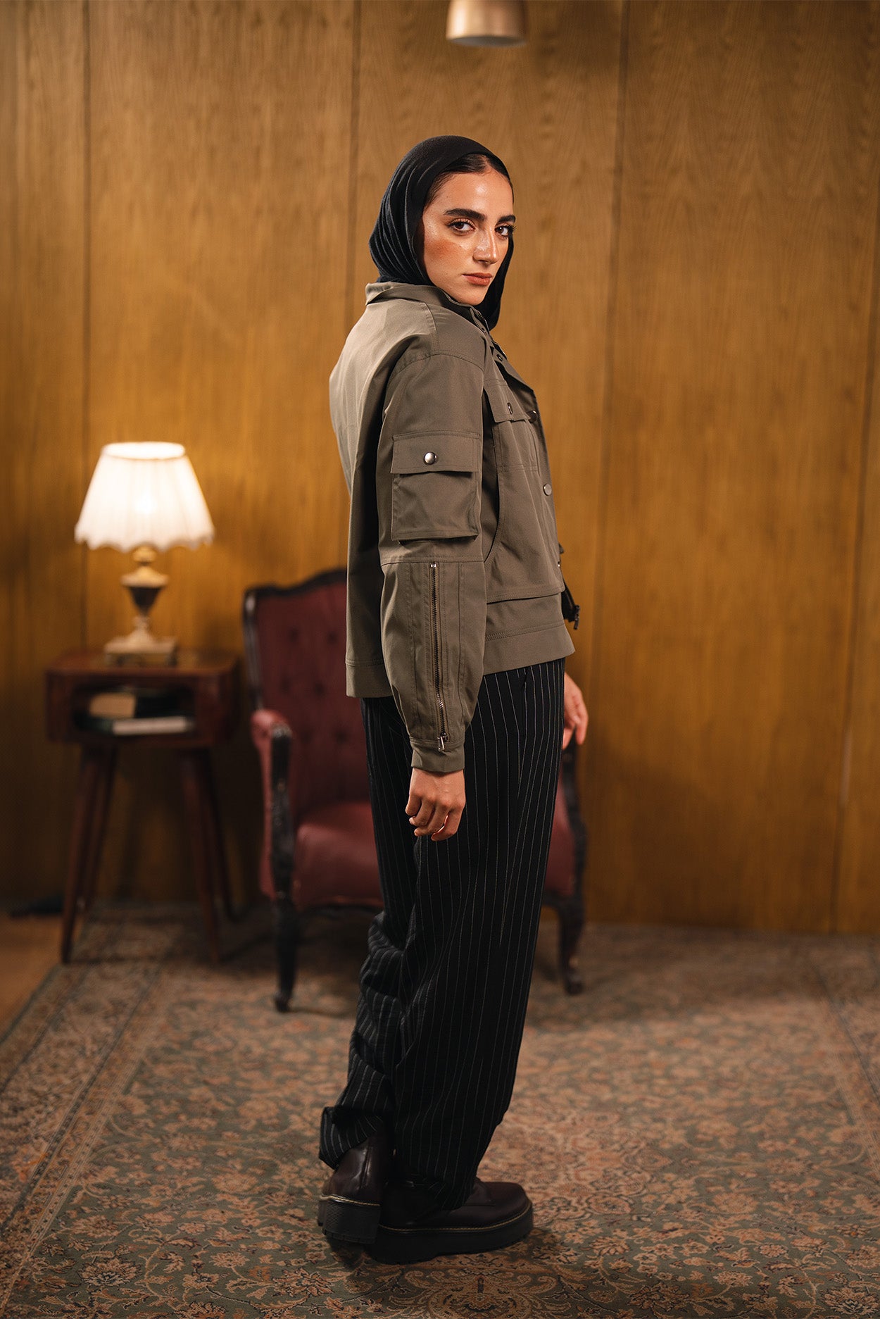A structured jacket made from durable woven fabric. Features flap pockets, metal snaps, and a straight, cropped cut for a clean, modern silhouette.Code :80468 Material :GabardineLength : RegularCare Instructions: Machine wash at max. 30ºC/86ºF with short spin cycle , Do not use bleach , Iron at a maximum of 110ºC/230ºF ,Do not dry clean ,Do not tumble dry