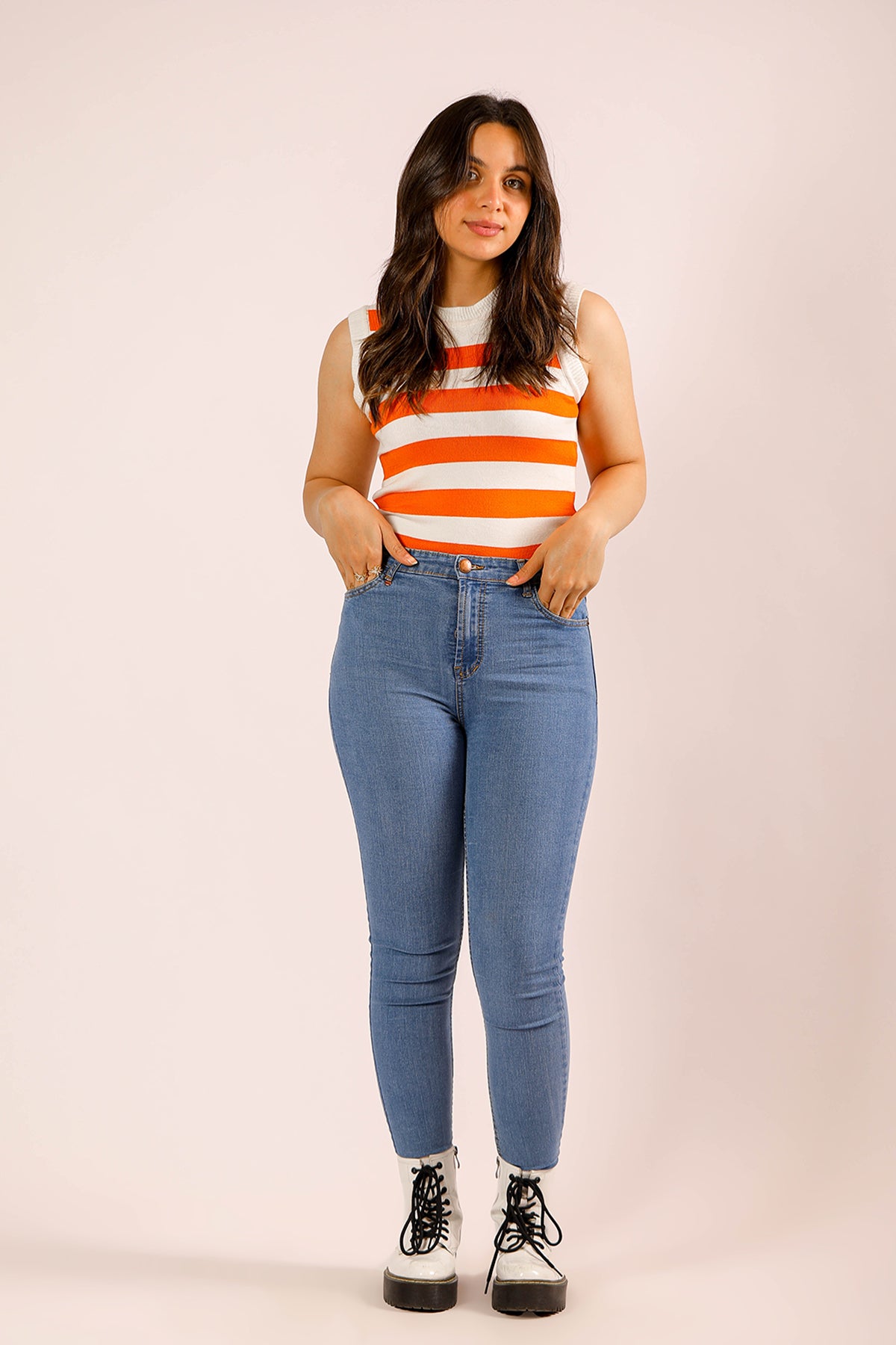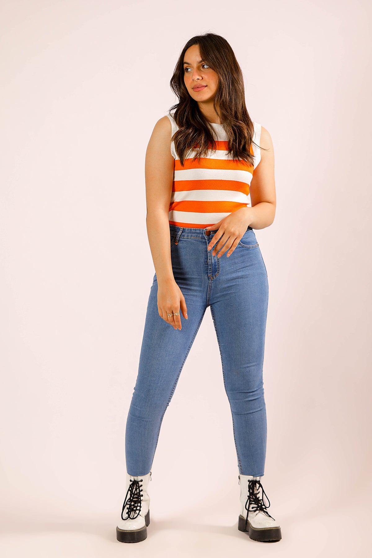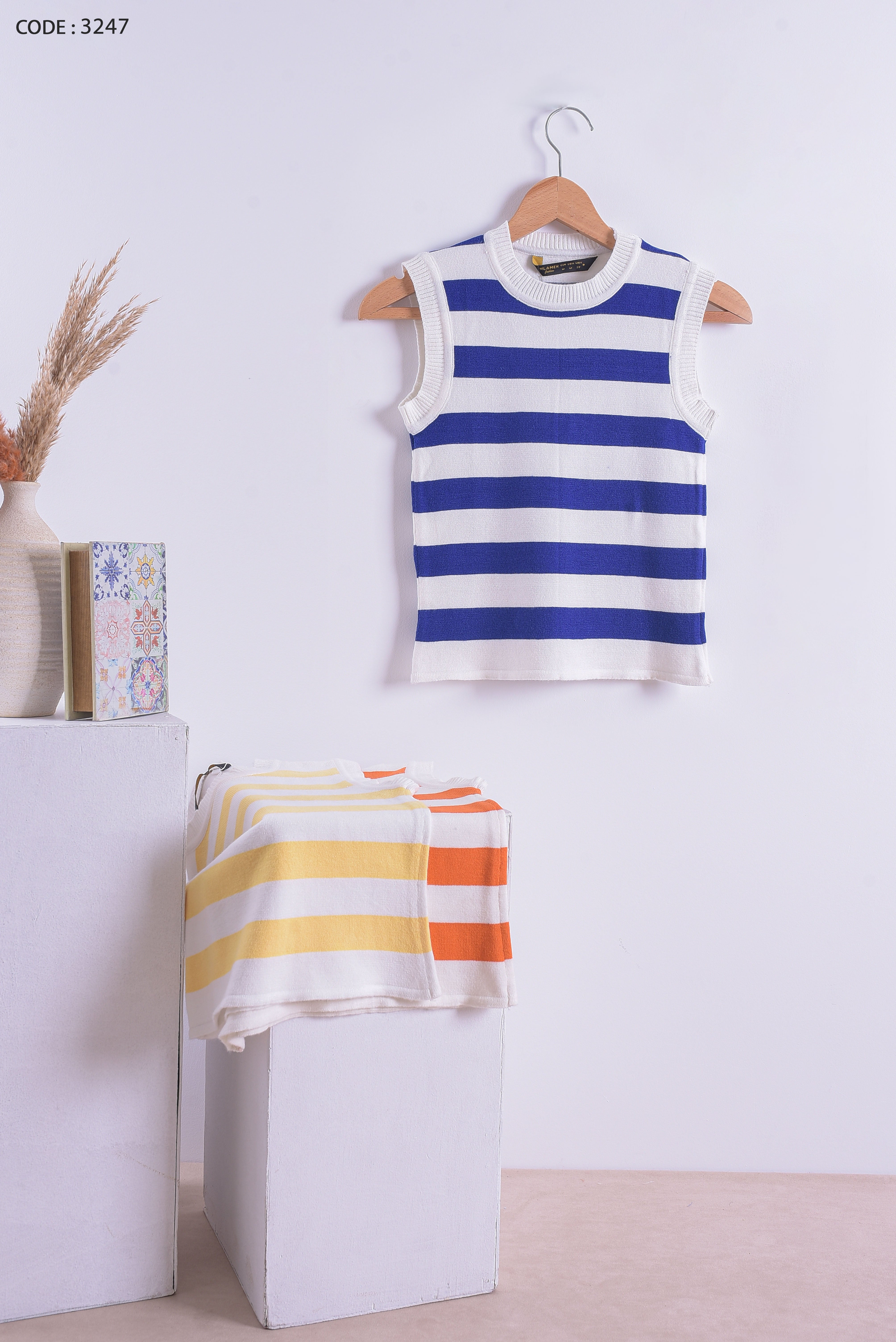 Cropped striped sleeveless knit vest , fitted silhouette.Code :3247Material :KnitLength : ShortCare Instructions: Machine wash at max. 30ºC/86ºF with short spin cycle , Do not use bleach , Iron at a maximum of 110ºC/230ºF ,Do not dry clean ,Do not tumble dry