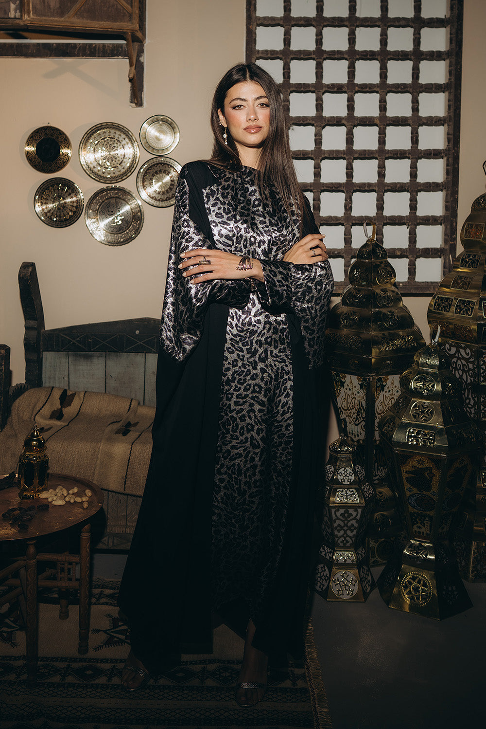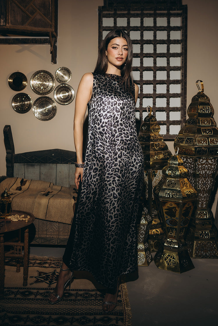 Basic dress with leopard pattern, & sleeveless silhouette. Cut to fall straight and fluid, creating a smooth base layer. Made from a soft, breathable fabric with a shimmery finish.Code: B140/1Material :SatinLength : LongCare Instructions: Machine wash at max. 30ºC/86ºF with short spin cycle , Do not use bleach , Iron at a maximum of 110ºC/230ºF ,Do not dry clean ,Do not tumble dry