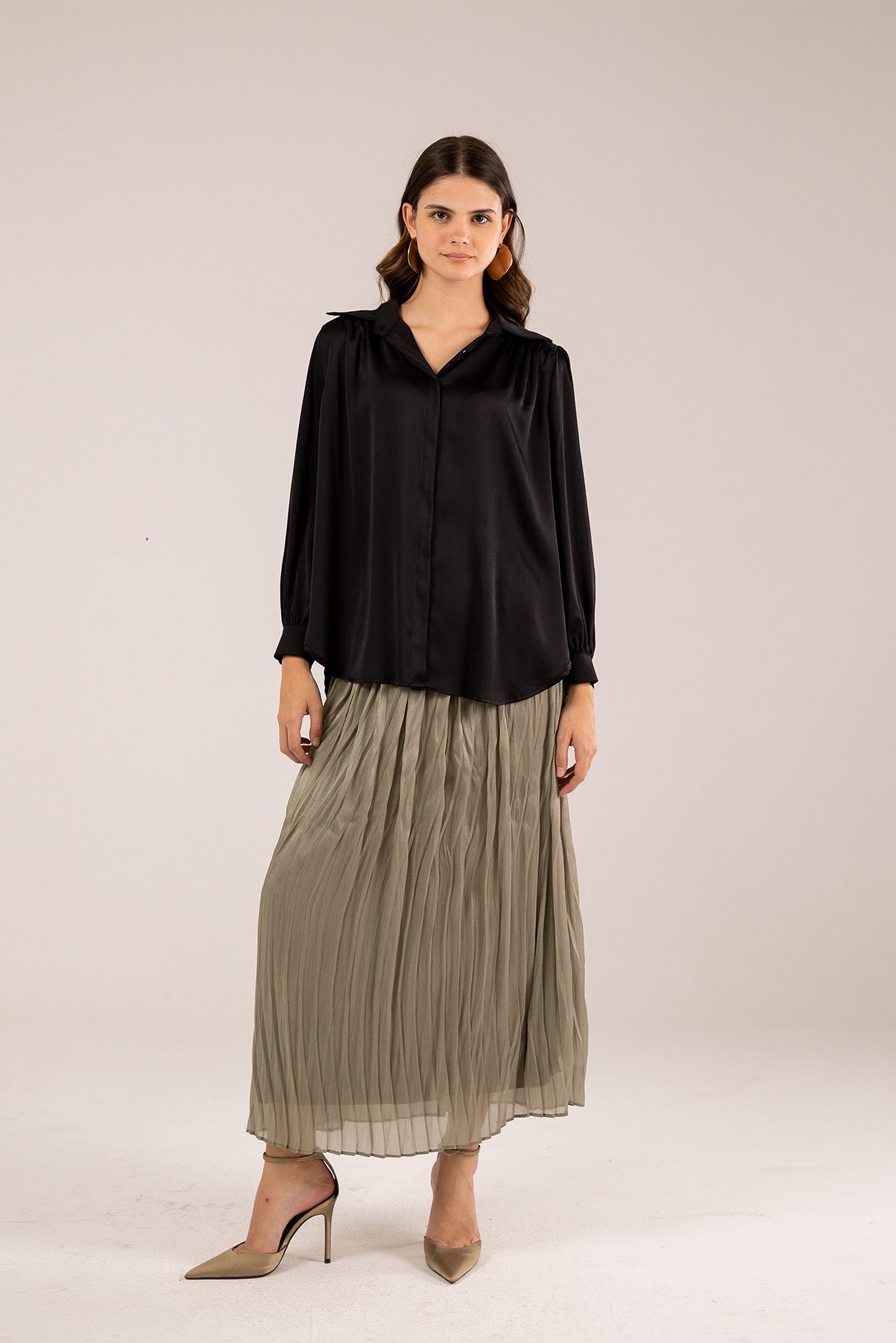 Designed with a comfortable elastic waistband for a flexible and flattering fit, this ankle-length skirt is defined by fine vertical pleats that create graceful movement and soft structure.Code : S5742Material : OrganzaLength : RegularCare Instructions: Machine wash at max. 30ºC/86ºF with short spin cycle , Do not use bleach , Iron at a maximum of 110ºC/230ºF ,Do not dry clean ,Do not tumble dry