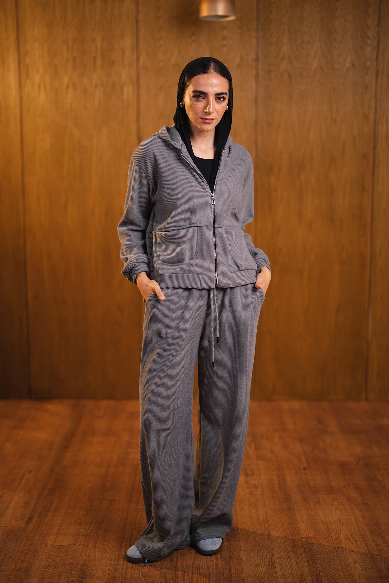 Cut from soft ribbed fabric, this gray zip hoodie offers a cozy yet structured feel. Designed with dropped shoulders, front patch pockets, and a relaxed silhouette for easy layering and everyday comfortCode :80498Material :VelvetLength : RegularCare Instructions: Machine wash at max. 30ºC/86ºF with short spin cycle , Do not use bleach , Iron at a maximum of 110ºC/230ºF ,Do not dry clean ,Do not tumble dry