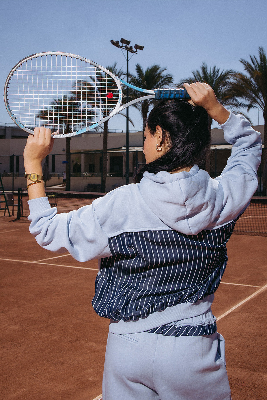 Oversized fit with layered hem and striped detail. Soft cotton blend with ribbed cuffs and adjustable drawstring hood.Code :80460Material :MeltonLength : RegularCare Instructions: Machine wash at max. 30ºC/86ºF with short spin cycle , Do not use bleach , Iron at a maximum of 110ºC/230ºF ,Do not dry clean ,Do not tumble dry