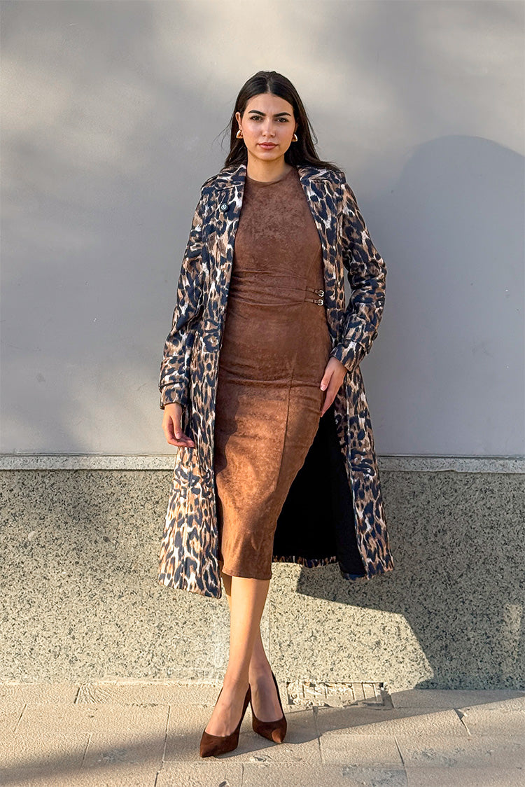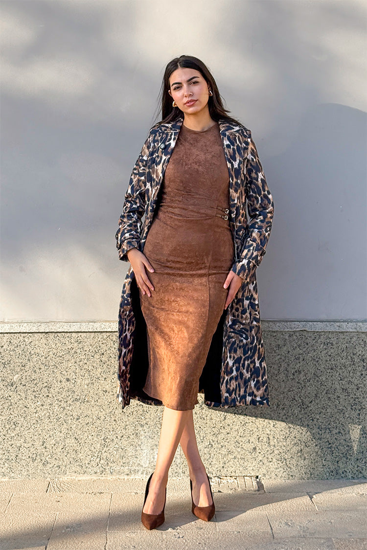 Tiger lapel neck wool coat with two pockets in frontCode :80337 Material :Wool Length : Regular Care Instructions: Machine wash at max. 30ºC/86ºF with short spin cycle , Do not use bleach , Iron at a maximum of 110ºC/230ºF ,Do not dry clean ,Do not tumble dry