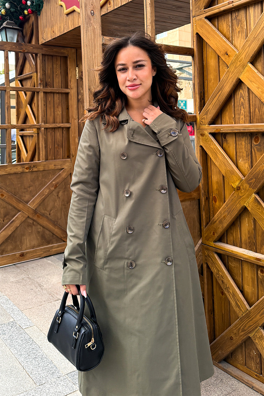 Long trench coat , crafted from smooth cotton blend fabric. Features a straight tailored cut, notch lapels, belted waist detail. comfort.Code :80488Material :GabardineLength : RegularCare Instructions: Machine wash at max. 30ºC/86ºF with short spin cycle , Do not use bleach , Iron at a maximum of 110ºC/230ºF ,Do not dry clean ,Do not tumble dry
